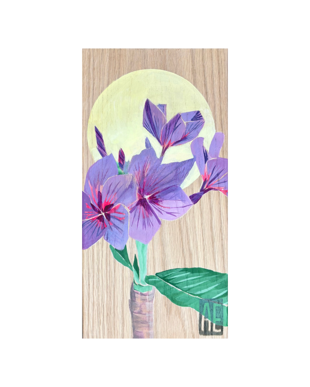 Plumeria – acrylic ink brushwork on solid oak panel with routed edges and a keyhole mount so that the piece hangs flush to the wall. Dimensions: 6″ x 12″ x […]