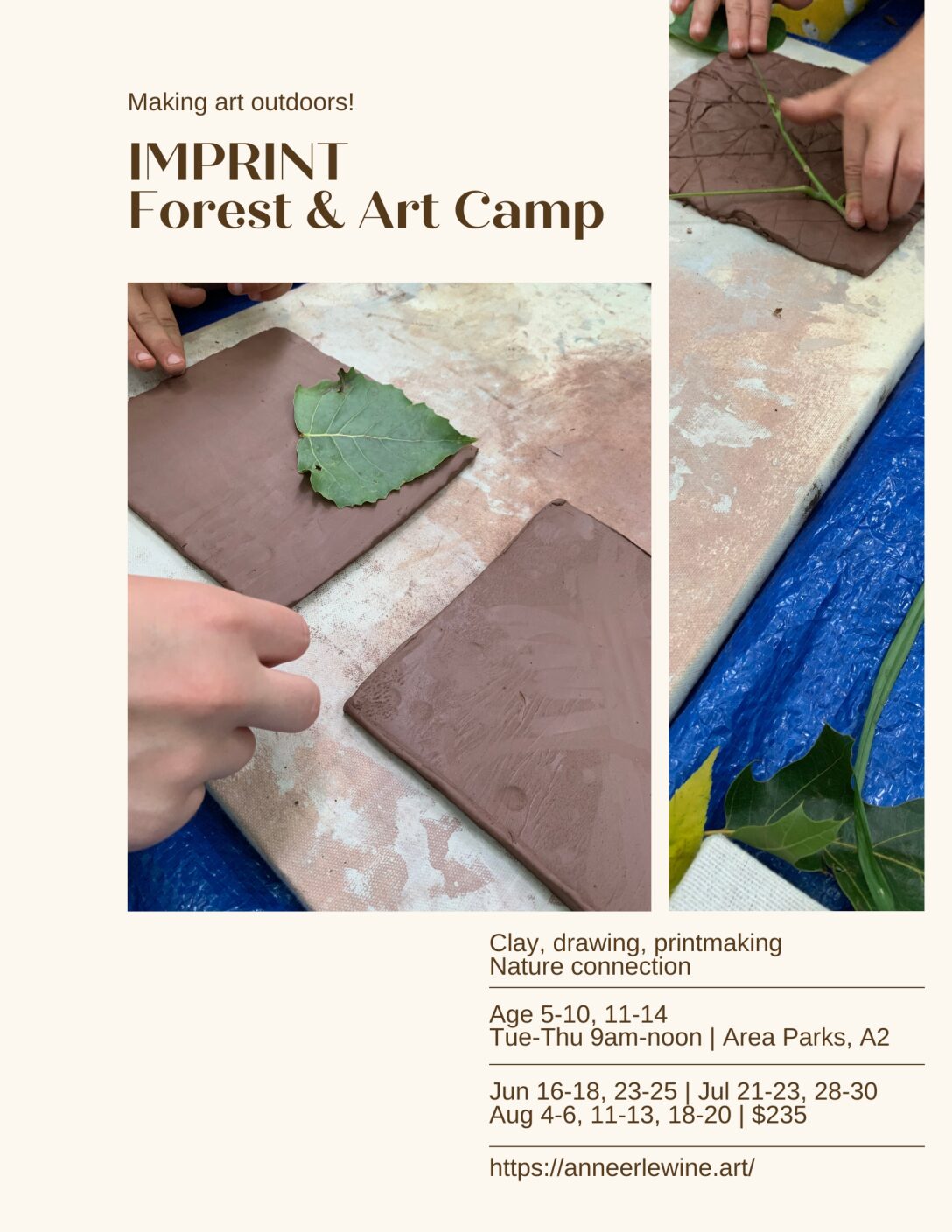 Forest School Educator Tara Habeck and Art Educator Anne Erlewine team up for the Summer of 2026, offering seven camp sessions from June through August. Together, they create opportunities for children ages 5-10 and 11-14 to explore nature and art in a playful, hands-on way.
